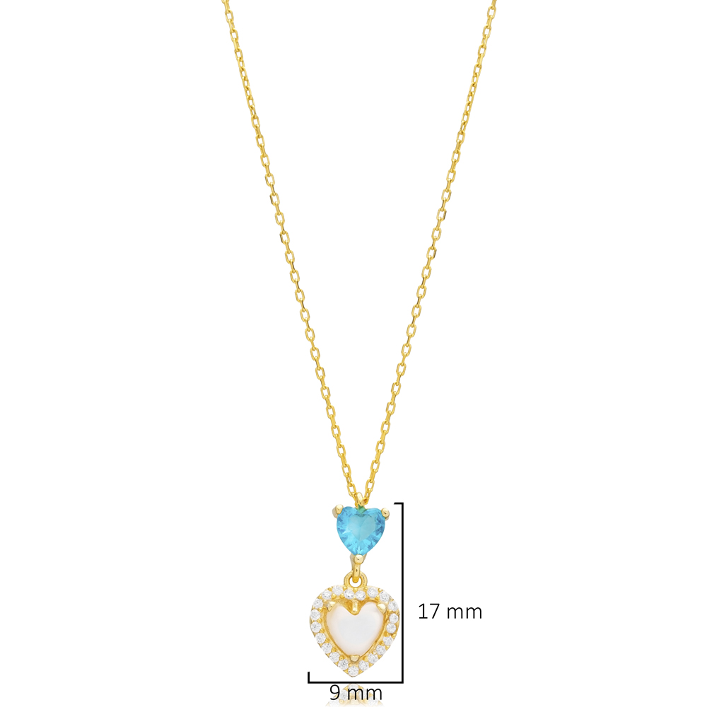 Mother of Pearl Heart Design Aquamarine CZ Silver Necklace - 2.55 g