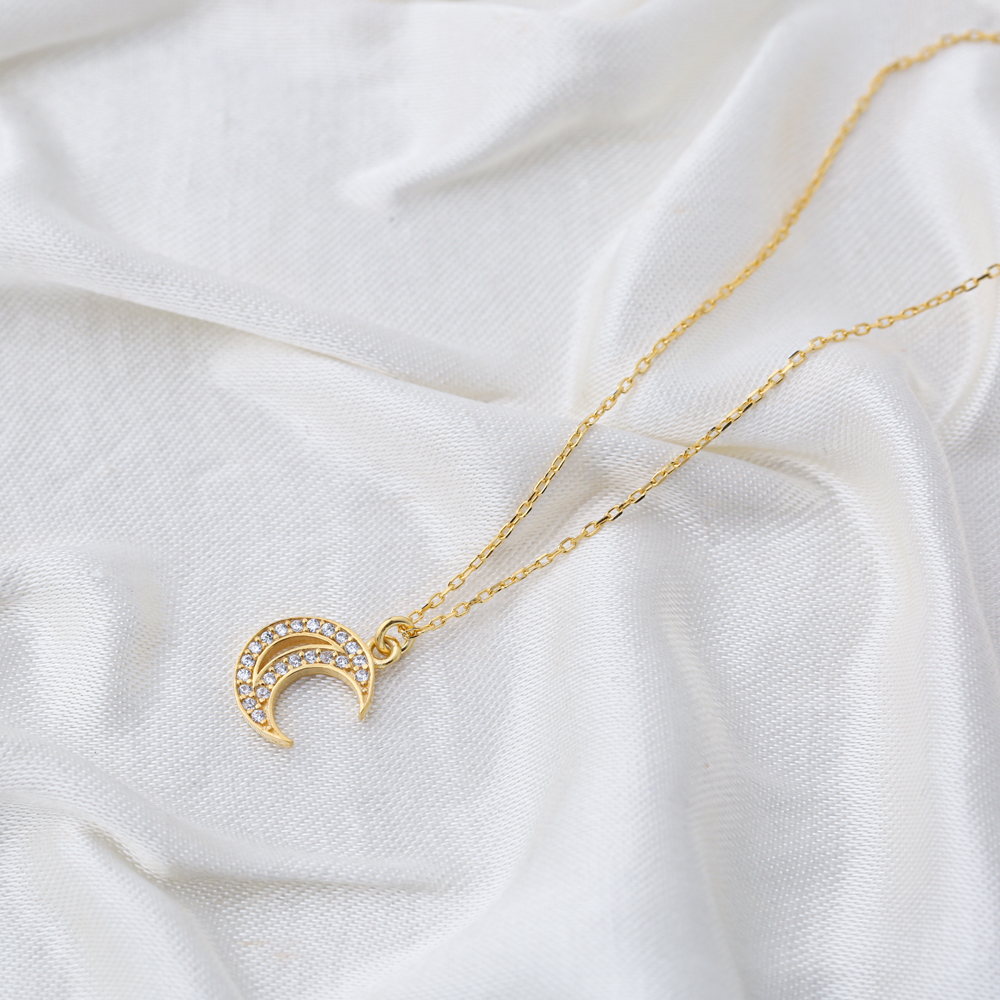 New Arrival Trend Zircon Moon Design Charm Necklace Turkish 925 Sterling Silver Jewelry - 2.10 g